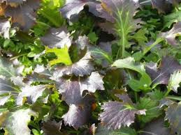 Klassikalise Mizuna kujuga kenasti sakilised lehed. Püstine taim ja ühtlane lilla/punane värvus.